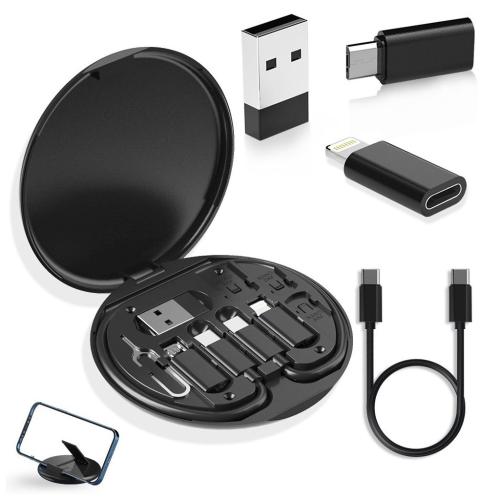 حامل هاتف مدمج وقابل للطي: مثالي لمشاهدة الفيديو أو إجراء مكالمات فيديو بدون استخدام اليدين.حجم صغير يسهل حمله: يناسب السيارة، المكتب، المقهى، أو السفر.كابلات شحن ونقل بيانات قابلة للتبديل: تشمل 4 موصلات (Android، Lightning، USB، Type-C).دعم الشحن السريع: كابل Type-C يتحمل طاقة عالية عند استخدامه مع شاحن سريع.تخزين منظم: يحوي أدوات متنوعة مثل إبرة إخراج SIM ومساحة صغيرة لشرائح SIM وكابلات.